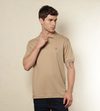 Camiseta tipo polo color arena oscuro.